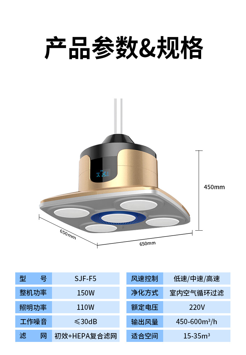 - 大燈遙控升降內循環(huán)吸煙凈化燈588C